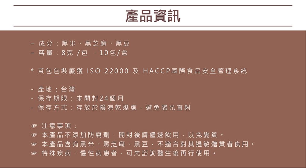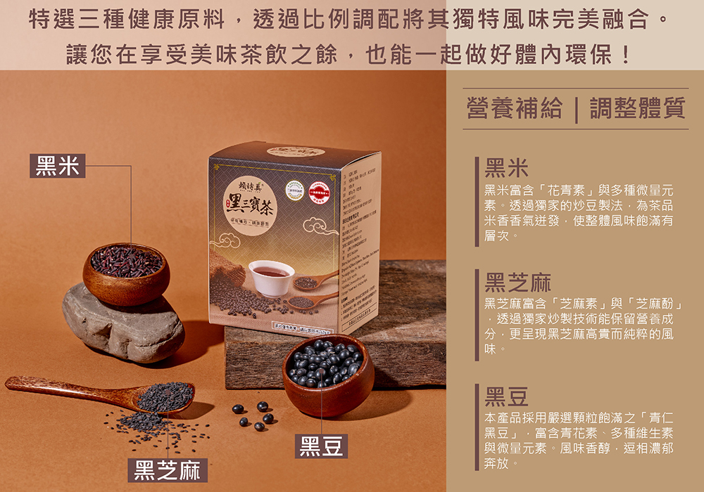 黑芝麻富含鈣質、芝麻素,獨家炒製技術保留營養成分,呈現黑芝麻高貴而純粹的風味