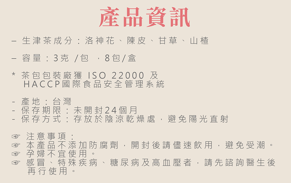 • 建議長期飲用可溫和調理體質,輕鬆養生~
