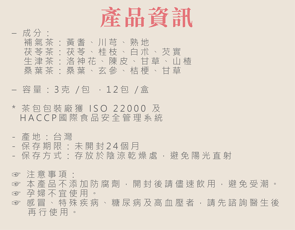 嚴選四款經典暢銷漢方茶款,廣受一致好評